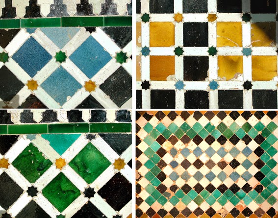 Como podéis comprobar en las fotografías de los detalles de los alicatados de la Alhambra, los coloridos de los vidriados son los mismos.